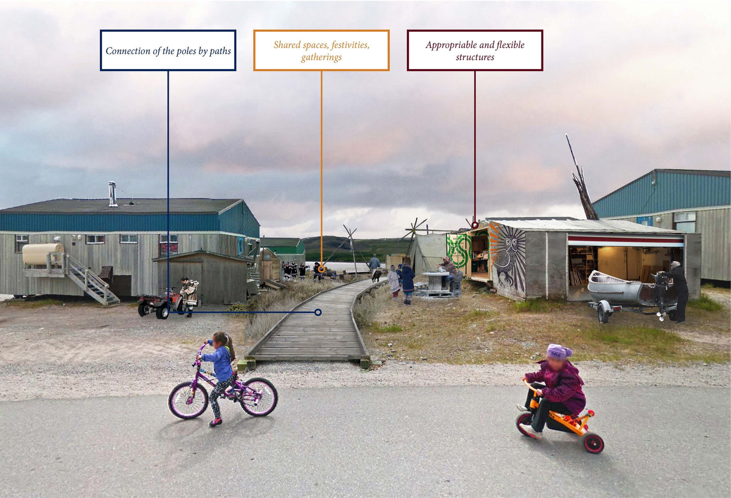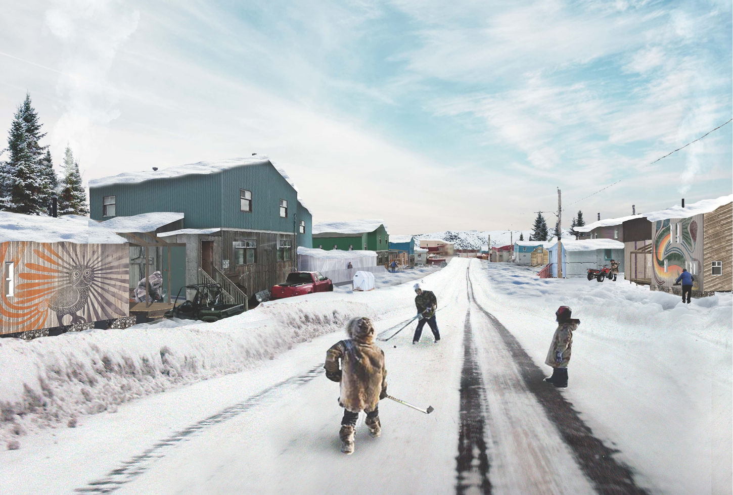 This community design project for Kangiqsualujjuaq uses the existing built environment and a network of streets and pathways as a framework to highlight local cultural practices and identity.